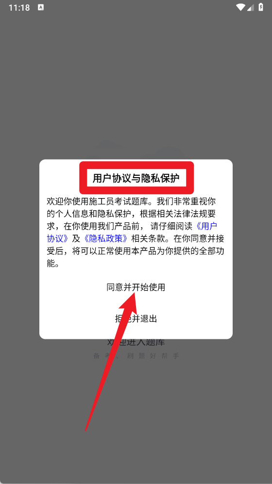 1、首次打开应用时,会弹出《用户协议与隐私保护》,请仔细阅读并点击同意并开始使用,即可进入系统使用全部功能。