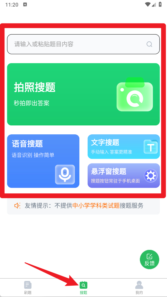 4、点击底部搜题,支持拍照搜题、语音搜题、文字搜题和悬浮窗搜题,多种方式快速获取答案,便于随时随地学习。