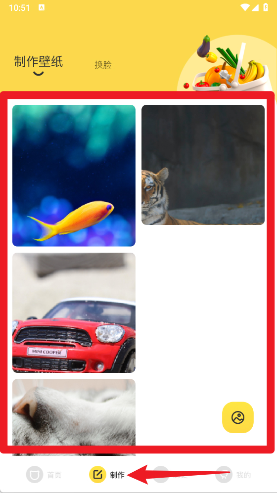 3、进入制作栏目,可以上传或选择素材,自由制作个性化壁纸,支持编辑功能,方便用户打造独特桌面。