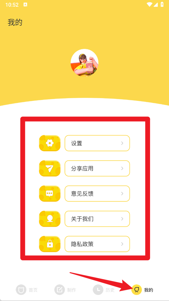 5、在我的栏目中,可以进入设置、分享应用、意见反馈、关于我们及隐私政策等功能区域,方便进行账号和应用管理。