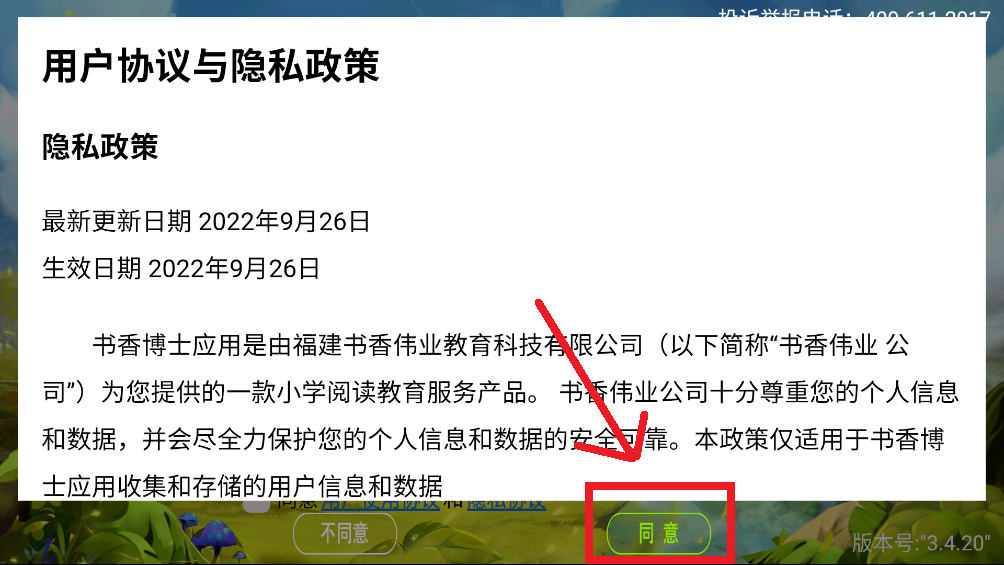 1、下载进入软件先阅读完用户协议,没有问题的话候选同意。