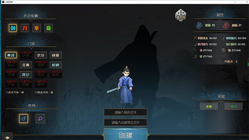 2、在对应界面创建专属角色,同时建立属于自己的帮派,奠定江湖起步基础。