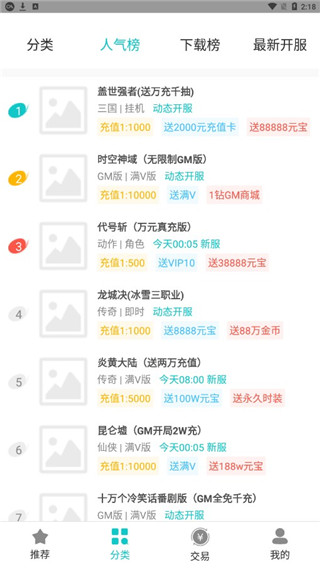 4、浏览人气榜、新游榜、开服表等板块,轻松发现热门手游。