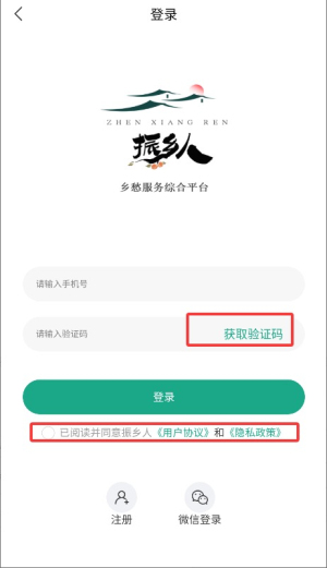 2、在首页点击去登录按钮,进入手机验证界面完成账号注册流程。