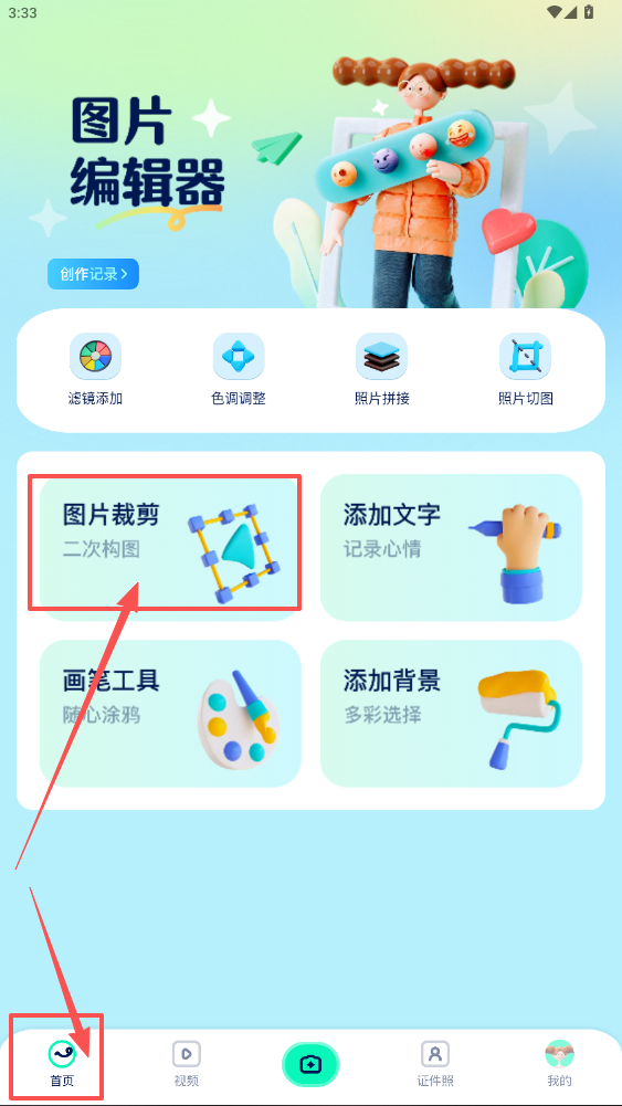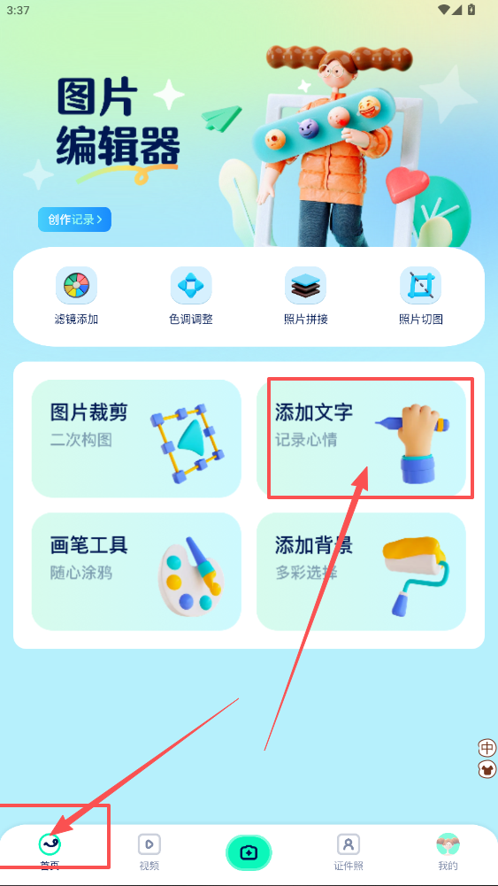 3、进入图片编辑界面,在下方输入需要添加的文字
