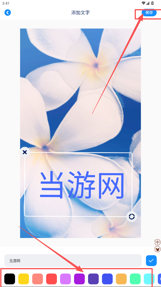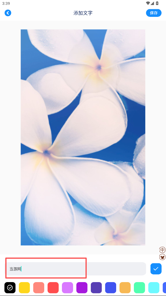 4、选择添加文字颜色,点击保存就能给图片添加文字了