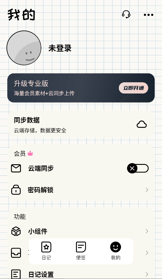 云端同步:确保您的日记和便签数据安全存储在云端,换设备也不丢失。