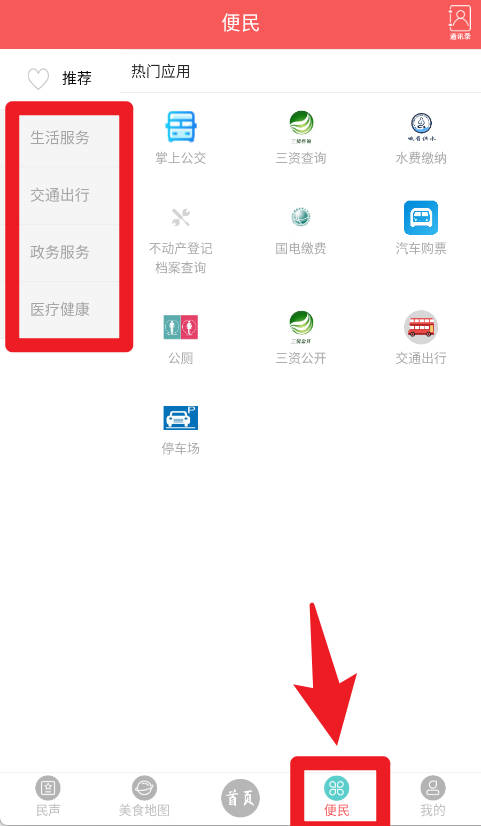 5、便民服务板块整合生活服务、交通出行、政务服务和医疗健康。