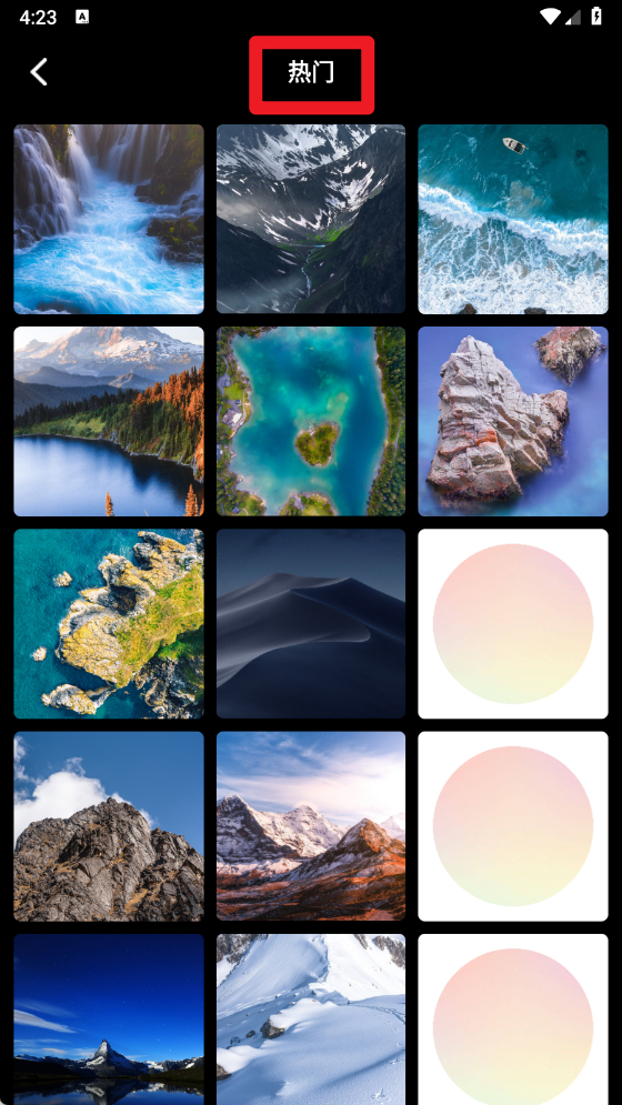 3、在热门页面,可发现自然风景、建筑、艺术等类型的高清壁纸,随时更换桌面风格。