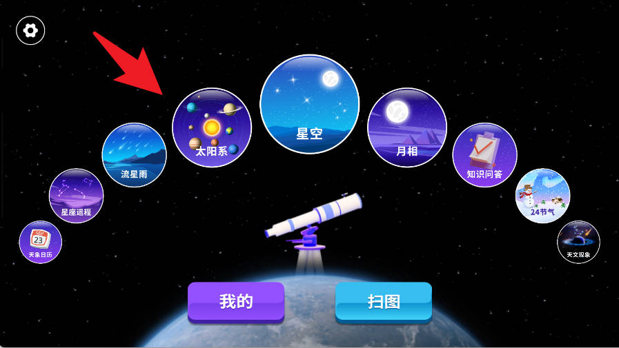 1、进入主界面后可选择太阳系、星空、月相等功能模块,通过直观图标快速开启探索。