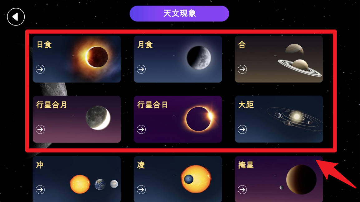 3、天文现象栏目涵盖日食、月食、行星合日等多种现象,点击即可获取图文并茂的介绍。