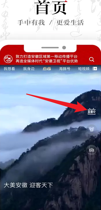 1、进入应用首页,可以浏览安徽本地特色内容及正在直播的节目,点击直播即可观看。
