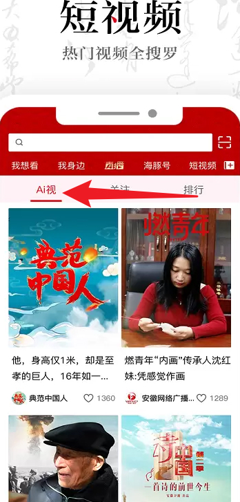 2、在AI视栏目中,用户可查看热门短视频内容,切换至 Ai视、关注、排行等分类,获取不同风格的视频推荐。
