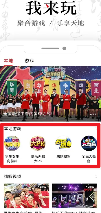 3、在本地模块,提供多种本地游戏与互动节目,例如男生女生向前冲、快乐无敌大PK等,用户可在线参与娱乐。