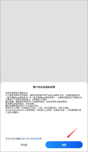 1、初次启动应用时,需阅读并同意用户服务协议及隐私条款,点击确认后进入主界面。