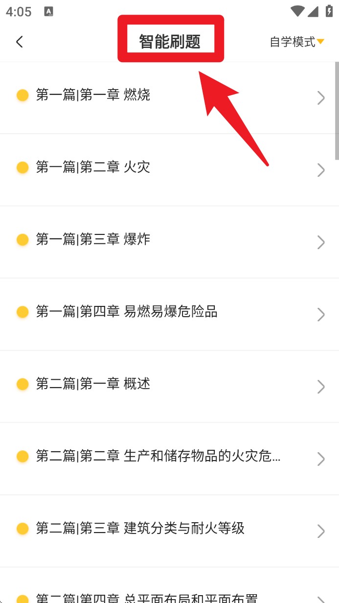 2. 进入智能刷题页面后,各章节题目清单按顺序排列,适合根据知识结构依次刷题、查漏补缺。