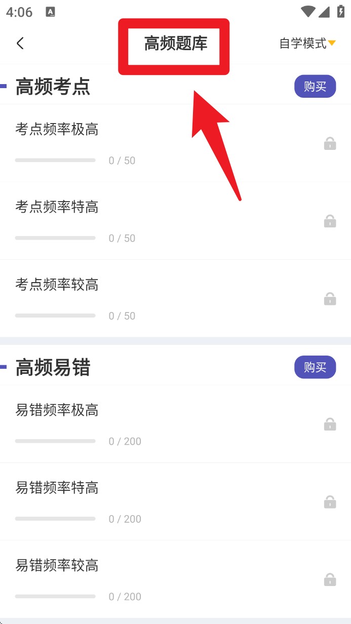 3. 点击高频题库可集中练习高频考点与易错内容,系统将题目依频率分类,适合冲刺阶段使用。