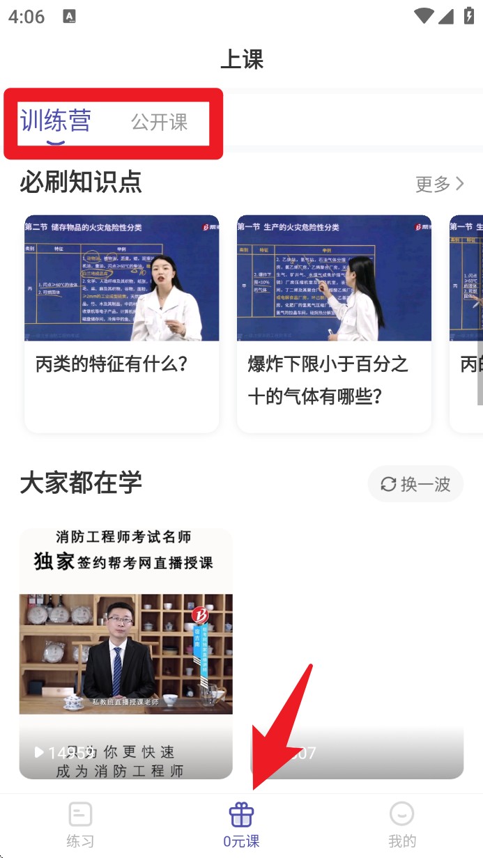 4. 在0元课页面中能进入训练营专区,免费观看高频知识点讲解视频,搭配图文同步理解更透彻。