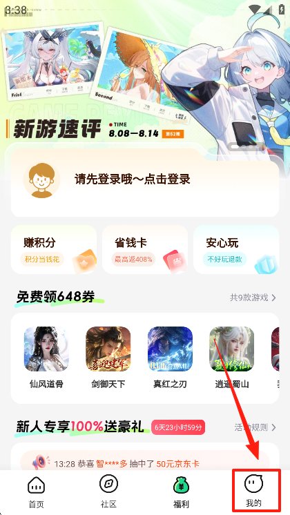 1、打开手游姬软件,点击底部菜单栏中的【我的】选项。