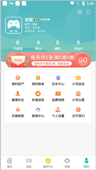 4、点击 “我的” 板块,可查看代金券、积分、预约信息、平台币等内容。