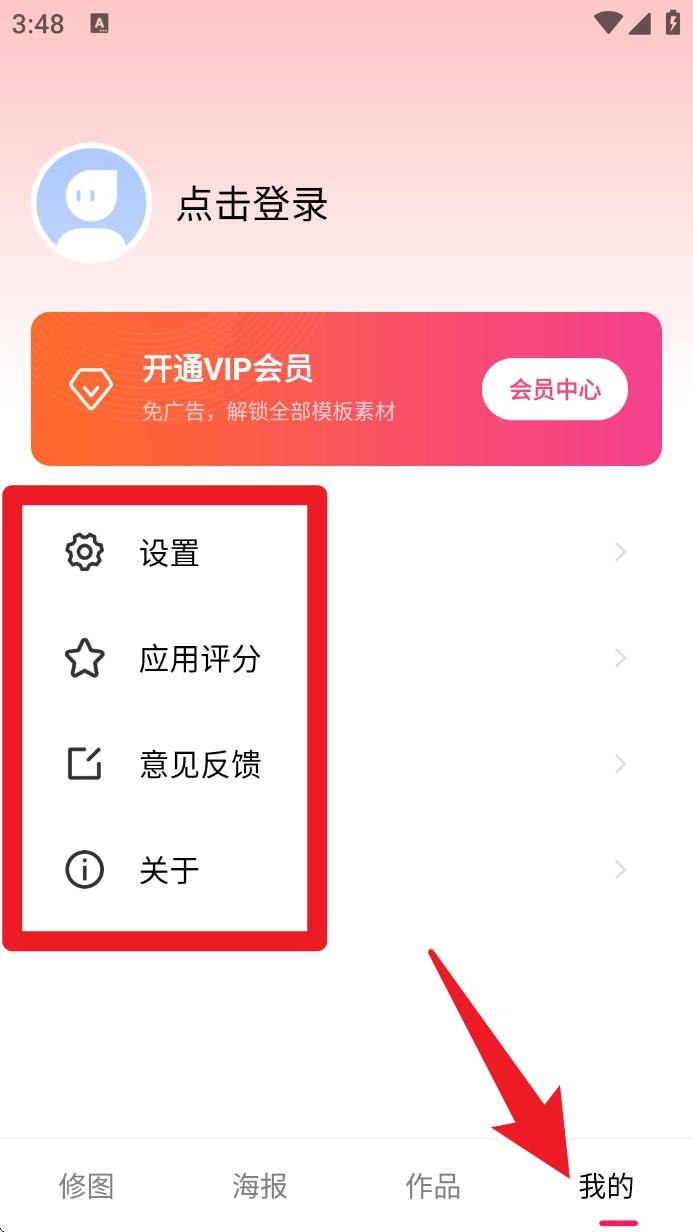 4. 点选我的栏目可进入个人中心,查看设置、评分、反馈与会员功能,支持登录解锁更多服务。