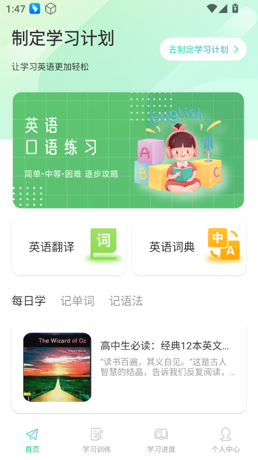 2、设置多样化训练模式,涵盖模拟考试、真题演练与口语朗读,满足不同学习需求。