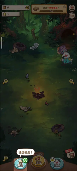1、首先为咖啡馆建造一张餐桌,找到并点击升级页面,进入建造相关界面。
