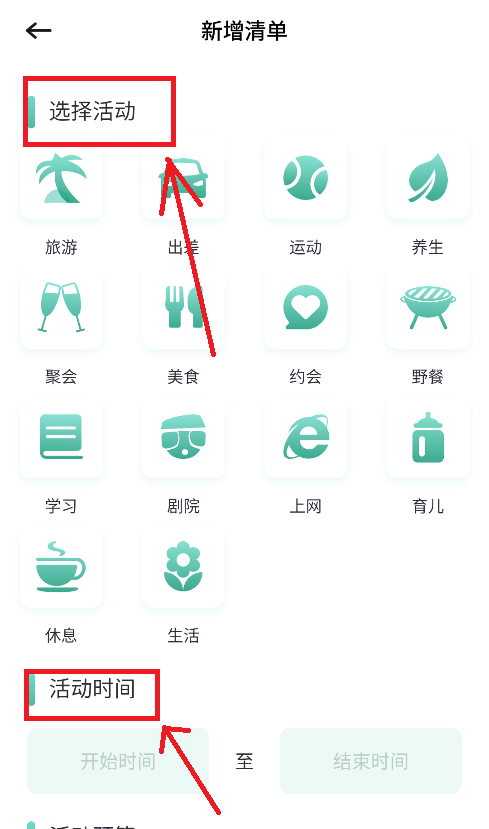 3、勾选你想写的清单内容,和添加出门旅游预期时间,就可以添加成功。