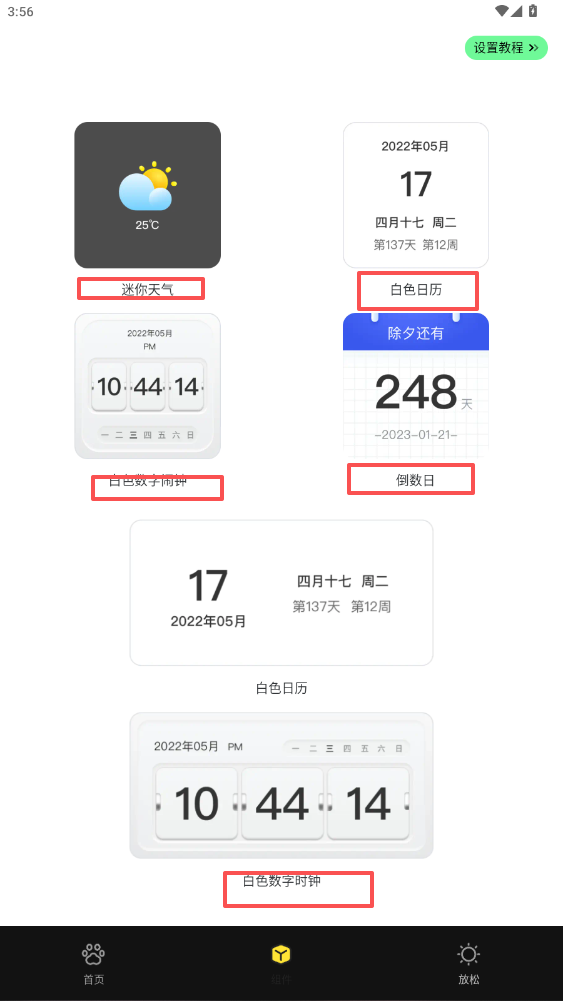 2、点击需要添加的组件,如:天气预报、日历、时钟