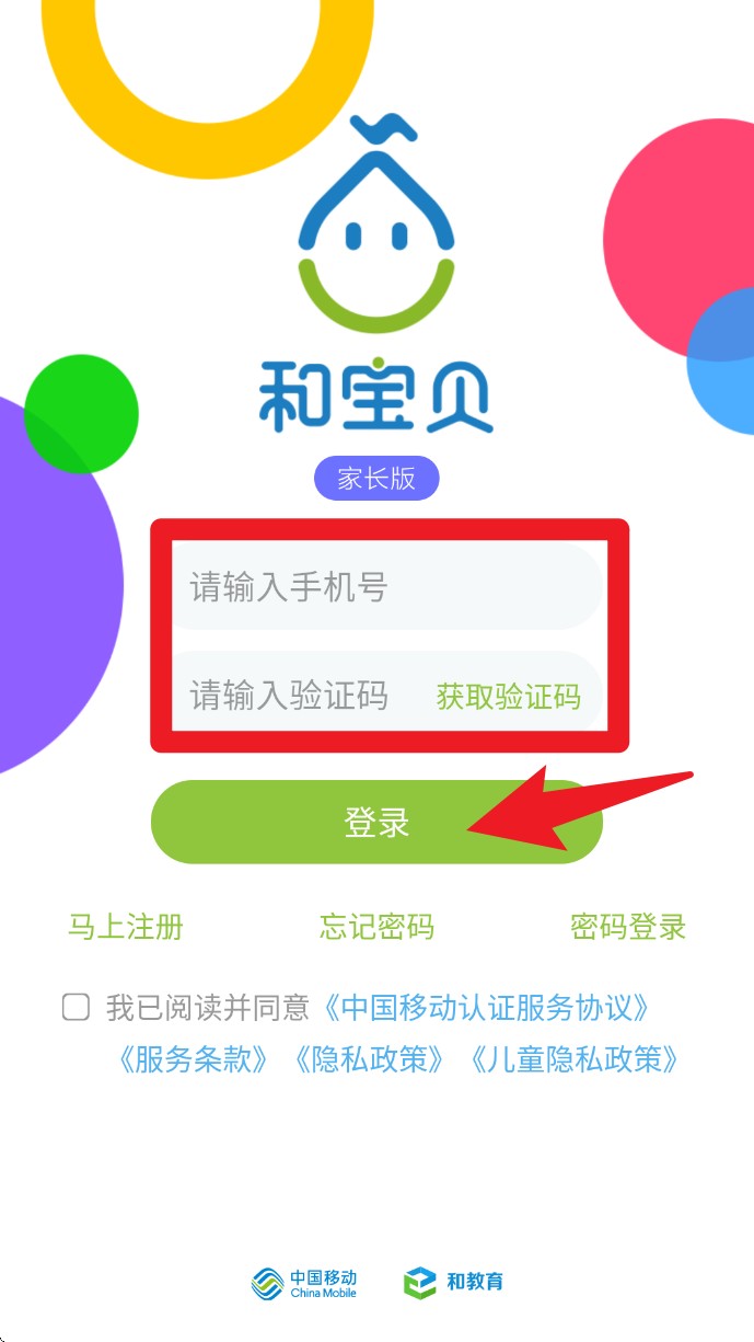 1. 打开App后,输入手机号并获取验证码,勾选协议后点击绿色按钮完成登录。