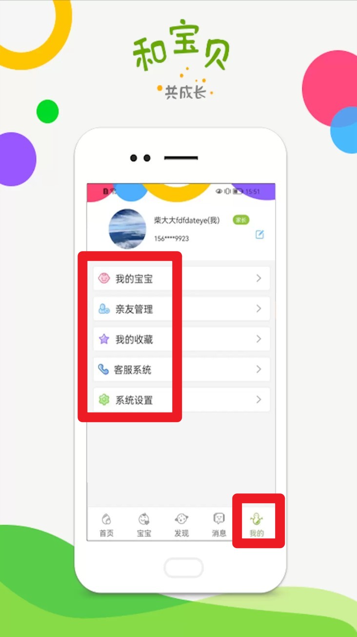 5. 点击底部我的可查看孩子资料、管理亲属账号、收藏内容或进入系统设置页面。