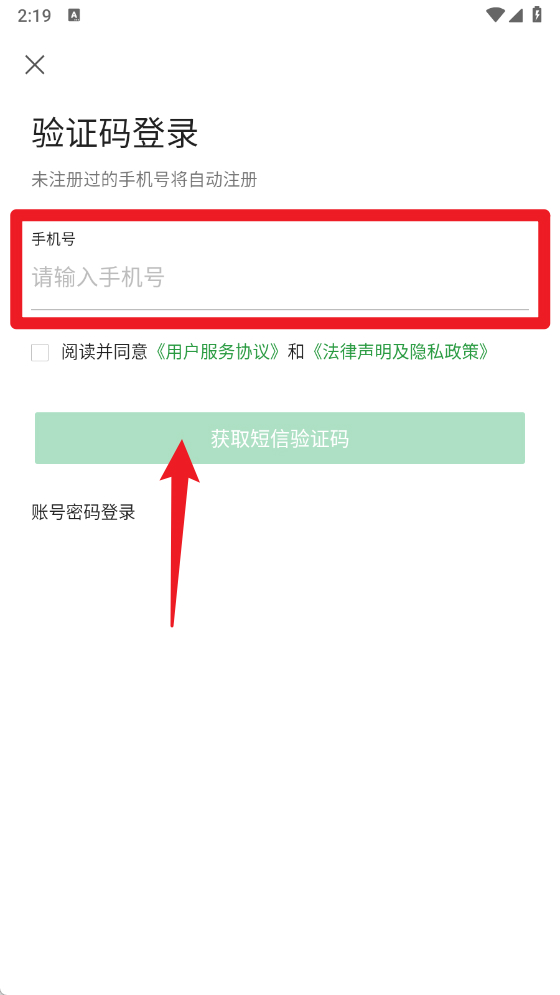 2、通过验证码登录页面输入手机号码,勾选同意相关协议后获取短信验证码完成登录注册。