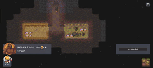 1、进入后先前往蚂蚁巢穴,这里是生产蚂蚁的核心区域,为后续发展奠定基础。