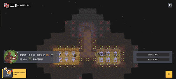 4、借助探查蚂蚁的照明,即可开始挖掘附近的土块,逐步扩充巢穴空间,提升容纳能力。