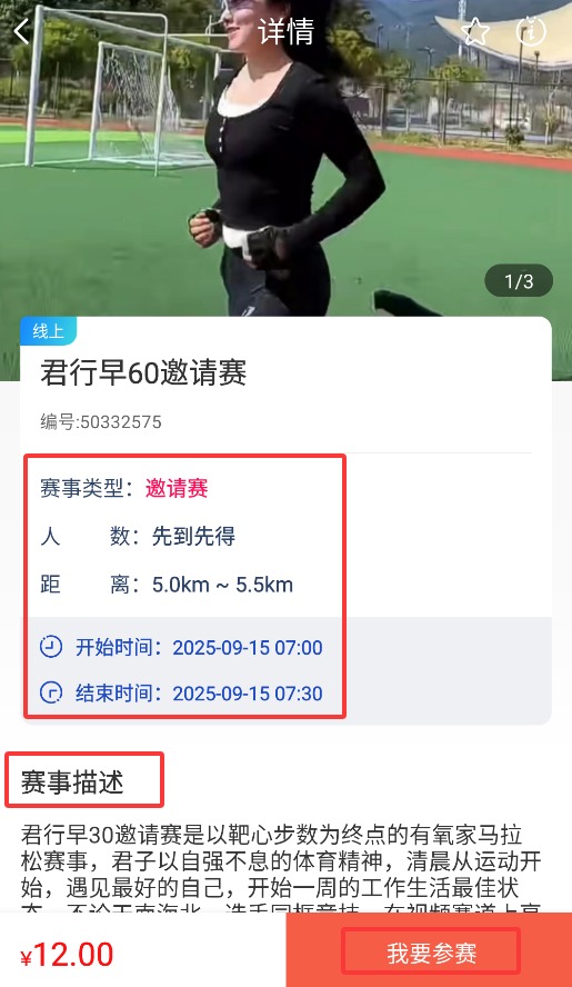 2、赛事报名:选择参赛类别与装备尺码,支付成功后查看电子资料包,包含参赛指南与身份凭证。
