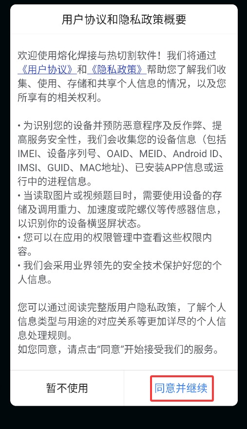 1、首次启动应用时,请点击弹窗中的同意选项,方可进入主界面开始使用。