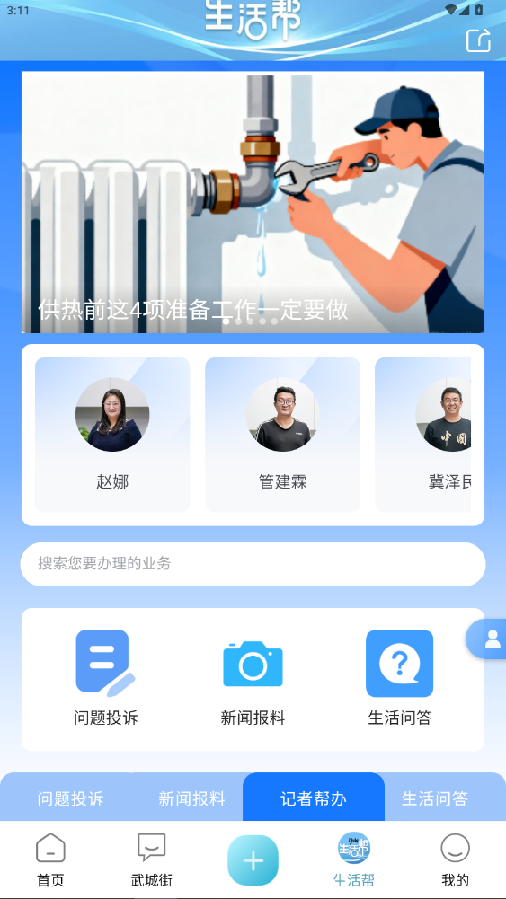 进入 “生活帮” 板块,有问题投诉、新闻报料、生活问答等功能。你可以在这里进行业务搜索,还能通过问题投诉反映生活中的难题,新闻报料提供新闻线索,生活问答解决生活疑问,同时还有记者帮办等服务,助力解决生活琐事。