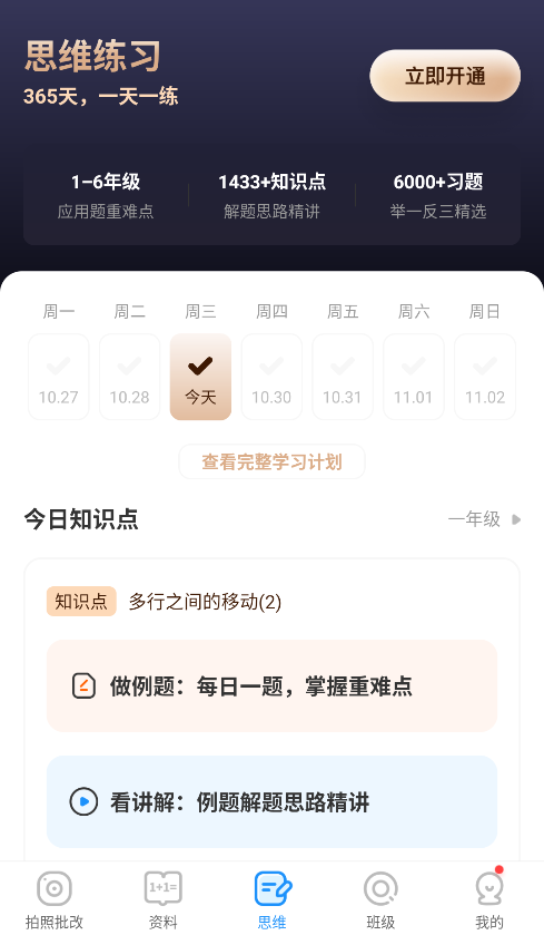 核心功能:提供系统化的 “365天,一天一练” 思维训练计划。