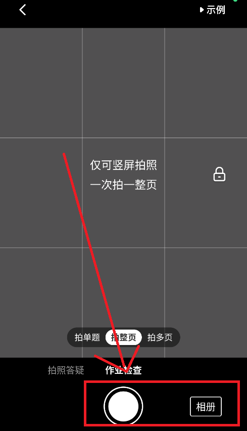 2、摄像头对准需要批改的作业,或者进入相册选择已经拍好的作业照片;