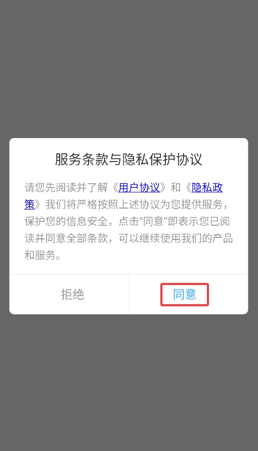 1、首次启动应用时,请点击弹窗中的同意选项,方可进入主界面开始使用。