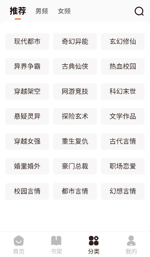 严格区分男频与女频内容,为不同性别用户提供专属阅读天地。