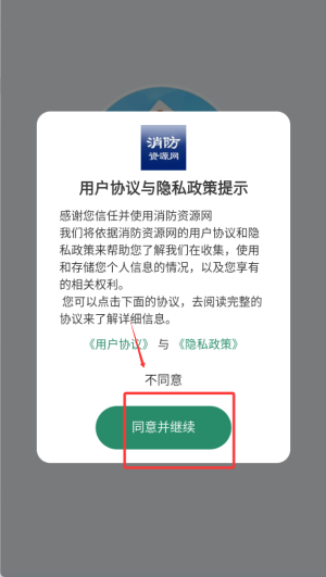 1、 轻点同意选项,即刻开启应用之旅,快速进入消防知识天地,为后续深入学习消防规范等内容做好充分准备。