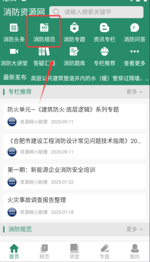 2、 步入消防规范板块,各类权威规范文件整齐罗列,可随心查阅,为消防工作实践提供精准指引与规范依据。