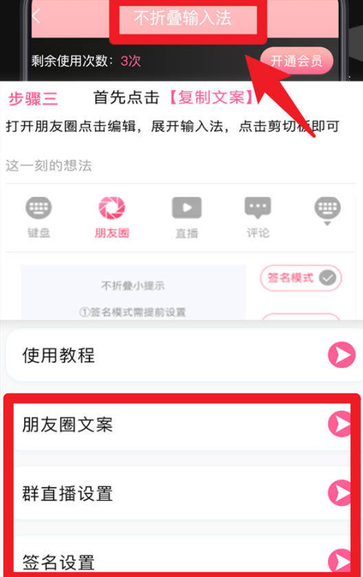 2、于不折叠输入法功能,支持朋友圈文案编辑、群直播设置等多样工具,帮助创作更高效。