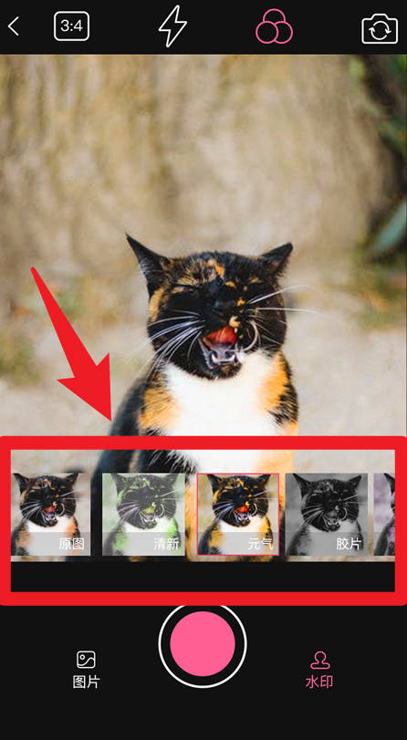 3、拍摄时可直接使用滤镜功能,内置清新、元气、胶片等多种风格,让作品效果更具个性化。
