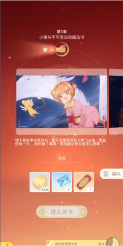 2、点击【进入关卡】前往第一章“小樱与不可思议的魔法书”。