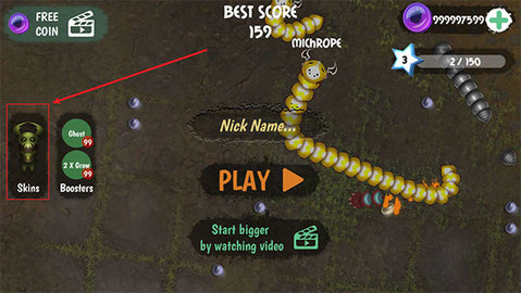 1、进入后,点击【Skins】按钮,即可进入皮肤商城,挑选心仪的虫子外观;