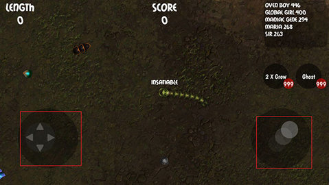 8、通过虚拟键盘控制移动方向,虫子慢慢扭动的身体看上去十分搞笑。