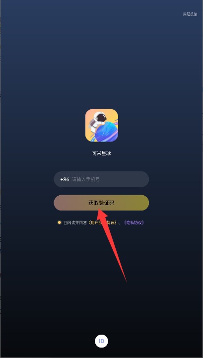 2、在登录界面输入手机号,勾选同意相关协议后点击获取验证码并输入完成登录。
