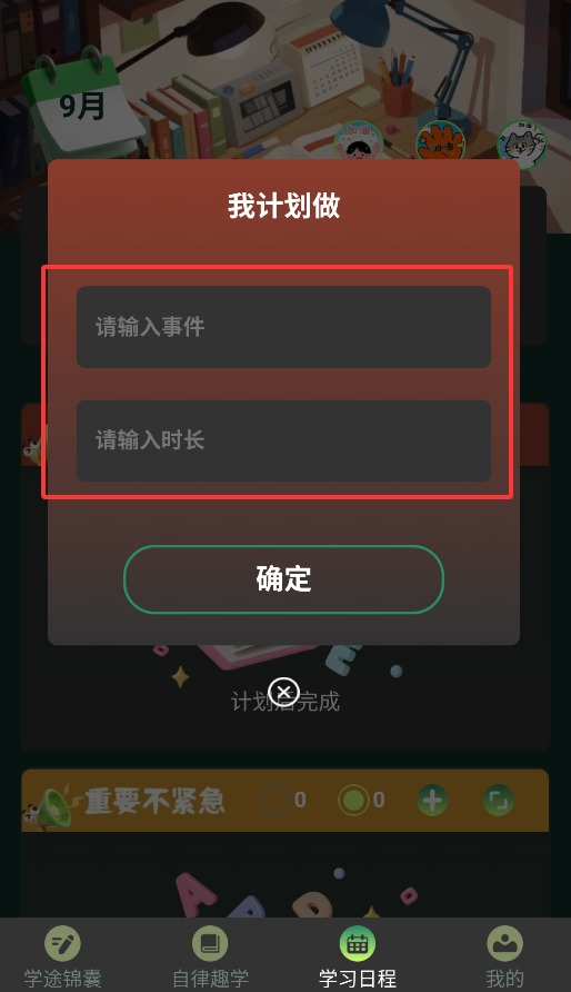 4、学习日程支持自定义任务计划,可设置学习时间与时长以科学管理进度。
